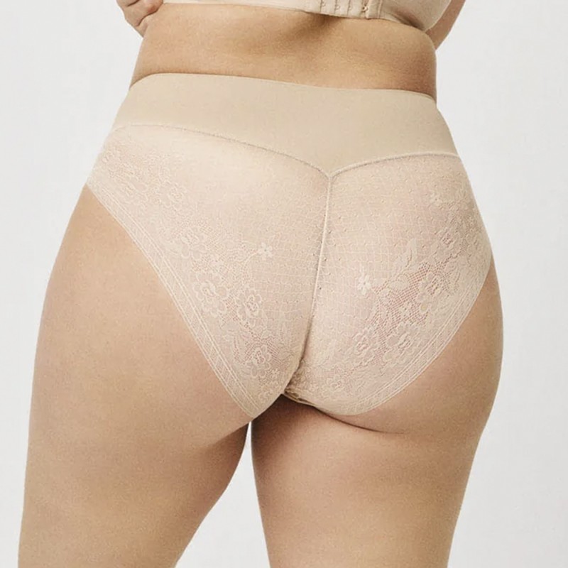 - Diseño Sensual e Invisible: El contorno de las perneras está rematado con un sensual encaje floral corte láser (o cut-out) en muslos y glúteos. Esta característica, junto con las costuras ultraplanas, garantiza que la braga sea completamente imperceptible bajo la ropa más ajustada.