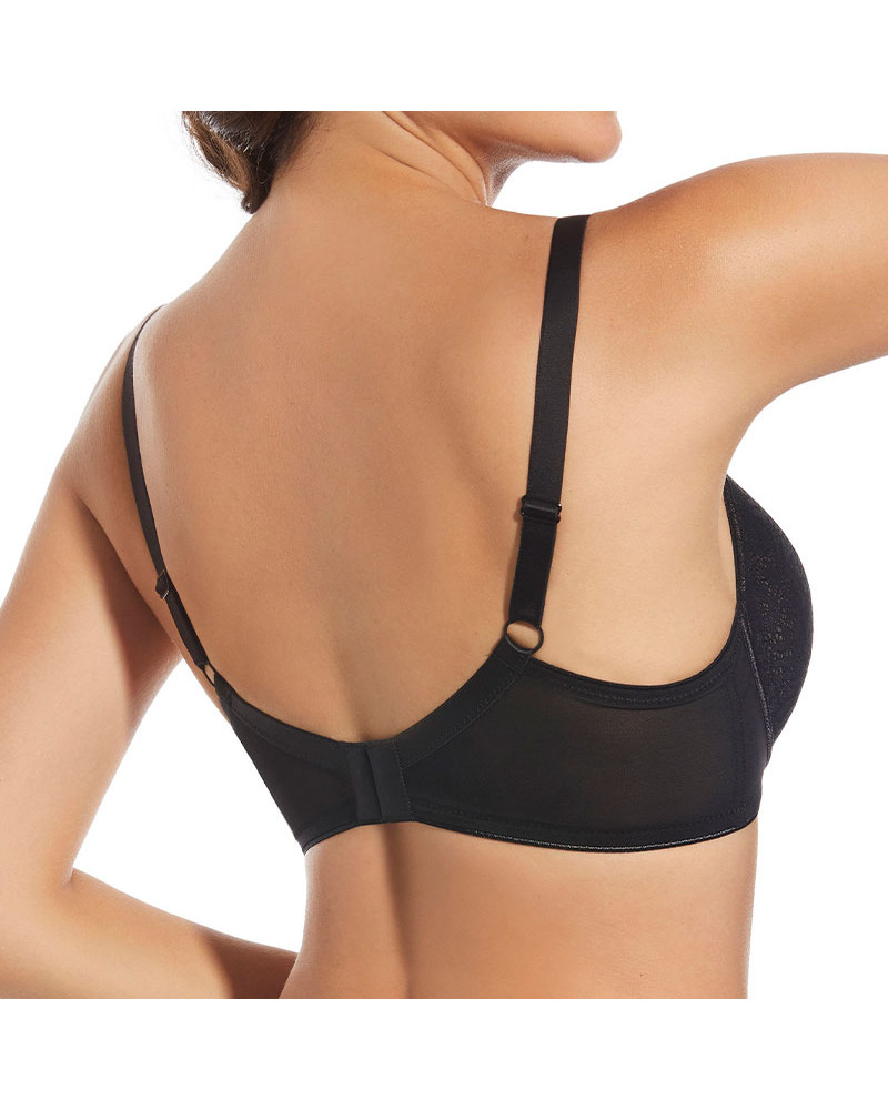 • Diseño Femenino con Encaje: Combina una suave microfibra adaptable en las copas con delicados encajes de tul y detalles florales en el escote y el contorno, aportando un toque de sofisticación y sensualidad.